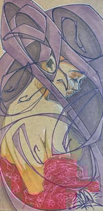 Crayon et feutre sur carton kraft épais 105x215mm